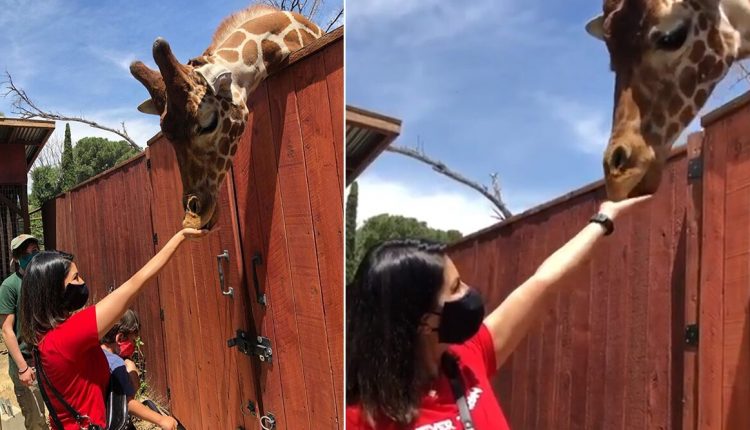 ସନ୍ନି ଲେଖିଛନ୍ତି, ଏହି ସମସ୍ତେ ଏହି ପଶୁମାନଙ୍କର ଯତ୍ନ ନେବା ଏବଂ ସେମାନଙ୍କୁ ଖାଇବାକୁ ଦେବା ପାଇଁ ବହୁତ ପରିଶ୍ରମ କରୁଛନ୍ତି ଏବଂ ଯଥାସମ୍ଭବ ଜଙ୍ଗଲକୁ ଫେରାଇ ଆଣିବାକୁ ଚେଷ୍ଟା କରୁଛନ୍ତି। ସେ ଏହି ଜିରାଫକୁ ହାତରେ ଖାଇବାକୁ ଦେଉଛନ୍ତି | ମୋଟା କାଠ କାନ୍ଥର ଅନ୍ୟ ପାର୍ଶ୍ୱରେ ଥିବା ଜିରାଫ୍ ସନ୍ନିଙ୍କ ହାତରୁ ନଷ୍ଟ ନକରି ଖାଦ୍ୟ ଖାଇଛି |