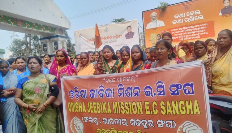 ଏରସମା : ସରକାର ମହିଳା ମାନଙ୍କ ପାଇଁ ଯୋଜନା ପରେ ଯୋଜନା ତିଆରିକରି ଅଧା ବାଟରେ ଛାଡିଦେବା ଦୁଃଖ ଓ ପରିତାପର ବିଷୟ। ଗୁରୁବାର ପୂର୍ବାହ୍ନ ରେ ଓଡ଼ିଶା ଜୀବିକା ମିଶନ ଇ.ସି ସଂଘର ଶହ ଶହ ମହିଳା ଏରସମା ଜଗନ୍ନାଥ ମନ୍ଦିରରୁ ଏକ ପ୍ରତିବାଦ ପଦଯାତ୍ରା ବାହାରି,ଏରସମା ମୁଖ୍ୟ ବଜାର ପରିକ୍ରମା କରି ଏରସମା ପଂଚାୟତ ସମିତି ସମ୍ମୁଖରେ ପହଂଚିଥିଲେ। ରାଜ୍ୟରେ ମହିଳା ମାନଙ୍କୁନେଇ ଅନେକ ସଂଗଠନ ଜରିଆରେ ଆର୍ଥିକ ମାନଦଣ୍ଡର ବିକାଶ ହେଉଥିବାବେଳେ ଓଡ଼ିଶା ଜୀବିକା ମିଶନ ଇ ସି ସଂଘର ମା ମାନଙ୍କ ପ୍ରତି ଅନ୍ୟ୍ୟାୟ ହୋଇଛି। ମହିଳା ମାନେ ନିଜର ଦାବିପତ୍ର ରାଜ୍ୟ ମୁଖ୍ୟମନ୍ତ୍ରୀ ଓ ଉପମୁଖ୍ୟମନ୍ତ୍ରୀ ଙ୍କୁ ଏରସମା ବିଡ଼ିଓ ଙ୍କ ମାଧ୍ୟମରେ ସ୍ମାରକ ପତ୍ର ପ୍ରଦାନ କରିଛନ୍ତି।ଏରସମା ବିଡ଼ିଓ ଙ୍କ ଅନୁପସ୍ଥିତି ଯୋଗୁଁ ଅତିରିକ୍ତ ବିଡ଼ିଓ ଜ୍ଞାନେନ୍ଦ୍ର ଲେଙ୍କା ଙ୍କୁ ଦାବିପତ୍ର ପ୍ରଦାନ କରାଯାଇଥିଲା। ମହିଳା ମାନଙ୍କ ଦାବି ମଧ୍ୟରେ ୧-ମିଶନଶକ୍ତି ଓ ଓଡ଼ିଶା ଜୀବିକା ମିଶନ ବିଭାଗ ପକ୍ଷରୁ ଜାରି କରାଯାଇଥିବା ଜିପିଏଲଏଫ ଇସି ସ୍ତରରେ ରି ଷ୍ଟ୍ରକ୍ଚରିଙ୍ଗ ପାଇଁ ନିର୍ଦେଶ ନାମା ଓ ନୂଆ ଗାଇଡ ଲାଇନ କୁ ପ୍ରତ୍ୟାହାର କରାଯାଉ।୨- ମିଶନ ଶକ୍ତି ଅଧିନସ୍ତ ଓଡ଼ିଶା ଜୀବିକା ମିଶନର ଗ୍ରାମପଞ୍ଚାୟତ ସ୍ତରୀୟ ମହାସଙ୍ଘ (GPLF)EC ଭାବେ କାର୍ଯ୍ୟରତ ମହିଳା EC ଭାବେ କାର୍ଯ୍ୟରତ ମହିଳା EC ସଦସ୍ୟା ଙ୍କ କାର୍ଯ୍ୟକାଳ ର ସମୟ ସୀମା ବୃଦ୍ଧି କରାଯାଉ। ୩- ମିଶନ ଶକ୍ତି ବିଭାଗ ର ସ୍କୁଟି ଋଣ ଯୋଜନା ର ସର୍ତବଳୀ ଅନୁଯାୟୀ ୪୮ଟି କିସ୍ତି ମଧ୍ୟରୁ ୧୨କିସ୍ତି ଦେୟ ହୋଇ ଥିବାବେଳେ ବାକି କିସ୍ତି ଗୁଡିକ ସମ୍ପର୍କରେ ସରକାର ବିଚାର କରନ୍ତୁ। ୪-ମିଶନ ଶକ୍ତି ଅଧିନସ୍ତ ଓଡ଼ିଶା ଜୀବିକା ମିଶନ ର କାର୍ଯ୍ୟରତ ଏହି ମହିଳା ଇ ସି କର୍ମୀଙ୍କୁ ସାମାଜିକ ନିରାପଟା ଓ କାର୍ଯ୍ୟକାଳ ସମୟରେ ଦୁର୍ଘଟଣା ଜନିତ ବୀମା ଯୋଜନା ପ୍ରଦାନ କରାଯାଉ। ଆଜିର ବିକ୍ଷୋବ ରେ ମହିଳା ମାନଙ୍କ ମଧ୍ୟରେ ଯୋଗମାୟା ନନ୍ଦ ଜିଲ୍ଲା ତଥା ରାଜ୍ୟ ସଭାନେତ୍ରୀ, ମିନାରାଣୀ ଗଛାୟତ ବ୍ଳକ ସଭାନେତ୍ରୀ,ସବିତା ଦାସ ସମ୍ପାଦିକା, ସୁଜାତା ରାଉଳ ପ୍ରମୁଖ ଯୋଗଦେଇ ଶାନ୍ତିପୂର୍ଣ ପ୍ରତିବାଦ କରିଥିଲେ। ମା ମାନଙ୍କ ସୁରକ୍ଷାରେ ଏରସମା ପୁଲିସ ନିଜର ଦାୟିତ୍ୱ ତୁଲାଇଥିଲେ।