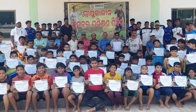 ଭବାନୀପାଟଣା : ସ୍ଥାନୀୟ ଲାଲ ବାହାଦୁର ଶାସ୍ତ୍ରୀ ଷ୍ଟେଡ଼ିୟମ ଠାରେ ରାଜ୍ୟ କ୍ରୀଡ଼ା ଓ ଯୁବସେବା ବିଭାଗ ପକ୍ଷରୁ ଗ୍ରୀଷ୍ମକାଳୀନ ଫୁଟବଲ ପ୍ରଶିକ୍ଷଣ ଶିବିର ମଇ ୧ ରୁ ୨୨ ତାରିଖ ଯାଏଁ ଆୟୋଜିତ ହୋଇଯାଇଛି। ଏଥିରେ ୮ ରୁ ୧୨ ବର୍ଷ ବୟସର ୭୦ ଜଣ ଛାତ୍ର ଅଂଶଗ୍ରହଣ କରିଥିଲେ। ଜିଲ୍ଲା କ୍ରୀଡ଼ା ଛାତ୍ରାବାସ ପରିସରରେ ଆୟୋଜିତ ଉଦଯାପନୀ ସମାରୋହରେ ଛାତ୍ର ତଥା ସେମାନଙ୍କ ଅଭିଭାବକମାନେ ଉପସ୍ଥିତ ରହିଥିଲେ। ଅଂଶଗ୍ରହଣ କରିଥିବା ଛାତ୍ରମାନଙ୍କୁ ପ୍ରମାଣପତ୍ର ପ୍ରଦାନ କରାଯାଇଥିଲା। ଜିଲ୍ଲା କ୍ରୀଡ଼ା ଅଧିକାରୀ ତଥା ଭାରପ୍ରାପ୍ତ କୋଚ୍ ରମେଶ ଚନ୍ଦ୍ର ପାଢ଼ୀ ଓ ଦେବେନ୍ଦ୍ର କୁମାର ରାଉତଙ୍କ ତତ୍ତ୍ୱାବଧାନରେ କାର୍ଯ୍ୟକ୍ରମ ଆୟୋଜିତ ହୋଇଥିଲା।