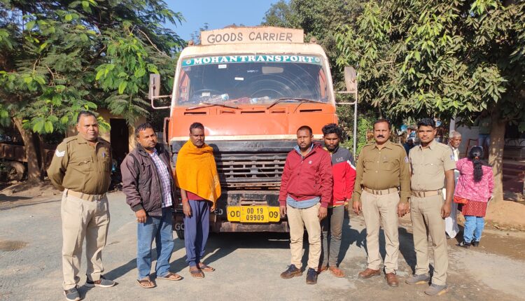 ଚମ୍ପୁଆ : ଗତକାଲି ଏକ ଚୋରା ଲୁହା ପଥର ବୋଝେଇ ଟ୍ରକକୁ ଜବତ  କରିଛି ଚମ୍ପୁଆ ପୋଲିସ ।ପେଟ୍ରୋଲିଙ୍ଗ  କରୁଥିବା ସମୟରେ ଯୋଡା ଖଣି ଅଞ୍ଚଳରୁ ଓଡି-୧୯କ୍ୟୁ-୯୯୦୯ ବାର ଚକିଆ ଟ୍ରକଟି ଲୁହାପଥର ବୋଝେଇ କରି ଝାଡ଼ଖଣ୍ଡ ରାଜ୍ୟକୁ ଯାଉଥିଲା । କୌଣସି ସୂତ୍ରରୁ ଖବର ପାଇ ପୋଲିସ ଉକ୍ତ ଗାଡିଟିକୁ ସ୍ଥାନୀୟ ଡାକ୍ତରଖାନା ଛକରେ ଅଟକାଇ କାଗଜପତ୍ର ଯାଞ୍ଚ କରିଥିଲେ । ଯାଞ୍ଚ ସମୟରେ ଗାଡ଼ିର କାଗଜପତ୍ର ଠିକ ନଥିବାରୁ ଗାଡି ଓ ଡ଼୍ରାଇଭର ସମେତ ଅନ୍ୟ ୩ ଜଣଙ୍କୁ ଥାନାକୁ ଆଣି ପଚରାଉଚୁରା କରାଯାଇଥିଲା । ଥାନା ଆଇଆଇସି ତ୍ରିନାଥ ସେଠୀଙ୍କ ନିର୍ଦ୍ଦେଶ କ୍ରମେ ସବ ଇନ୍ସପେକ୍ଟର ବରଦା ପ୍ରସନ୍ନ ସାହୁ ତଦନ୍ତ  କରିବା ପରେ ସେମାନେ ସତକଥା ମାନି ଯାଇଥିଲେ ।ଏହି କ୍ରମରେ ଥାନା କେସ ନଂ ୨୧୮/୨୩ ରେ ଏକ ମାମଲା ରୁଜୁ କରାଯାଇ ମକରଧ୍ବଜ ପାତ୍ର (୪୨)ପି-ସ୍ଵର୍ଗତ ବେଣୁଧର ପାତ୍ର ଘର ପାଟମୁଣ୍ଡା,କୋଇଡା ,ସୁବ୍ରତ କୁମାର ସାହୁ (୪୬) ପି-ଜଳଧର ସାହୁ,ମରସୁଆଁ,ତୁରମୁଙ୍ଗା,କୁଳମଣି ମହାନ୍ତ(୩୦) ପି-ସୁରେଶ ଚନ୍ଦ୍ର ମହାନ୍ତ,ବର୍ଲ୍ଲା, ଜଗନ୍ନାଥପୁର ,ସିଂହଭୂମି ଜିଲ୍ଲା ଏବଂ ଡ଼୍ରାଇଭର ଚଙ୍ଗ ମୁଣ୍ଡା(୨୪)ପି-ଵନମୁଣ୍ଡା,ପୋଡାଡିହି ,