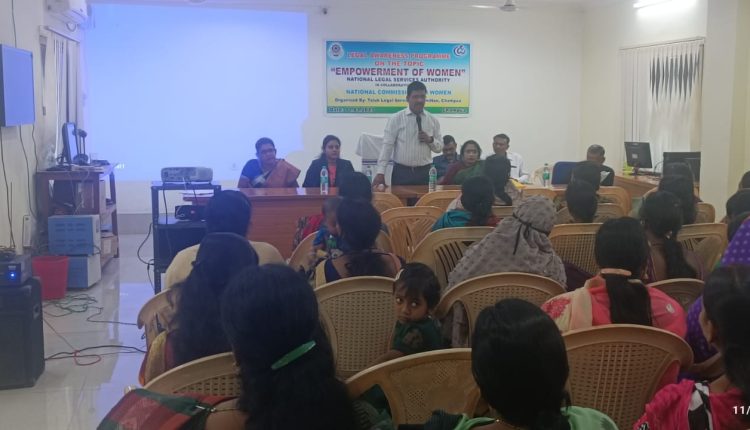 ଚମ୍ପୁଆ : ଚମ୍ପୁଆ ତାଲୁକ ଆଇନ୍ ସେବା କମିଟି ଆନୁକୂଲ୍ୟରେ ଚମ୍ପୁଆ ବିଜ୍ଞାପିତ ଅଞ୍ଚଳରେ ମହିଳା ସଶକ୍ତିକରଣ ଓ ସଚେତନତା କାର୍ଯ୍ୟକ୍ରମକୁ ଅତିରିକ୍ତ ଜିଲ୍ଲା ଦୌରାଜଜ୍ ତଥା ତାଲୁକ୍ ଆଇନ୍ ସେବା କମିଟିର ଅଧ୍ୟକ୍ଷ ଶ୍ରୀ ସରୋଜ କୁମାର ପ୍ରଧାନ ଅଧ୍ୟକ୍ଷତା କରିଥିଲେ । ସମ୍ମାନନୀୟ ଅତିଥି ଭାବେ ଶ୍ରିମତୀ ସଂଙ୍ଗୀତା ସୀଂହ, କେନ୍ଦୁଝରର ବରିଷ୍ଠ ଆଇନଜୀବୀ  ଏବଂ ଶ୍ରିମତୀ ପଦ୍ମୀନି ମିଶ୍ର, ଚମ୍ପୁଆର ବରିଷ୍ଠ ଆଇନଜୀବୀ  ମହିଳାଙ୍କ ବିଭିନ୍ନ ପ୍ରକାର ଆଇନଗତ ସମସ୍ୟା ବିଷୟରେ ବର୍ଣ୍ଣନା କରିଥିଲେ । ଏହି ସଭାରେ ଜେ.ଏମ୍.ଏଫ୍.ସି ସୁଶ୍ରୀ ସାଇପ୍ରୀୟା ତ୍ରିପାଠୀ, ବାର୍ ସଭାପତି ଶ୍ରୀ ହରେକୃଷ୍ଣ ମିଶ୍ର, ଫ୍ରଣ୍ଟ ଅଫିସ୍ ରିଟେନର୍ ଶ୍ରୀ ରାମବଲ୍ଲଭ ମିଶ୍ର,  ବରିଷ୍ଠ ଆଇନଜୀବୀ ବିଷ୍ଣୁ ଚରଣ ରାଠୋର୍ ଏବଂ ରମେଶ ଚନ୍ଦ୍ର ପ୍ରଧାନ ପ୍ରମୁଖ ଉପସ୍ଥିତ ଥିଲେ । ଅତିଥି ମାନେ ବକ୍ତବ୍ୟରେ ମହିଳାଙ୍କୁ  ସଶକ୍ତିକରଣ କରିବା ଦିଗରେ ବିଭିନ୍ନ ଯୋଜନା, ସଂରକ୍ଷଣ ବ୍ୟବସ୍ଥା ଏବଂ ମାଗଣା ଆଇନ ସେବା ସମ୍ପର୍କ ବିଷୟରେ ଆଲୋକପାତ କରାଇଥିଲେ । ସରକାରଙ୍କ ପକ୍ଷରୁ ପରିବାର ପରାମର୍ଶ କେନ୍ଦ୍ର ମାଧ୍ୟମରେ ବାଲ୍ୟବିବାହକୁ ବିରୋଧ, ବିଧବାଙ୍କ  ସୁରକ୍ଷା ଓ ଥଇଥାନ, ଯୈ।ତୁକ ନିର୍ଯାତନା, ଅମ୍ଳ ଆକ୍ରମଣ, ଶିଶୁ ଯୈ।ନ ଉତ୍ପୀଡନ ଘଟଣାକୁ ନଜରକୁ ଆଣୀଲେ ସଂପୃକ୍ତ ଅଭିଯୁକ୍ତଙ୍କ ବିରୋଧରେ ଦଣ୍ଡ।ଦେଶ ବ୍ୟବସ୍ଥା ରହିଛି । ଏଭଳି ଘଟଣା ଘଟିଲେ  କିମ୍ବା ସମ୍ମୁଖୀନ ହେଲେ ମହିଳା ହେଲ୍ପଲାଇନ୍ ୧୮୧ ନମ୍ବରକୁ  ସମ୍ପର୍କ  କରିବାକୁ ପରାମର୍ଶ ଦିଆଯାଇଅଛି । ଏହି ସଭାକୁ ସହକାରୀ ଅବଦୁଲ ସୁରଜ ଖାନ୍ ପରିଚାଳନା କରିଥିବା ବେଳେ କୋର୍ଟର  ନାଜୀର୍ ପଙ୍କଜ କୁମାର ନାୟକ,  ସ୍ବେଚ୍ଛାସେବୀ ରାମ୍ କ୍ରୀଷ୍ନ ଜୀତ୍ ଏବଂ ମନୋଜ୍ କୁମାର୍ ନାଏକ୍ ସହଯୋଗ କରିଥିଲେ।
