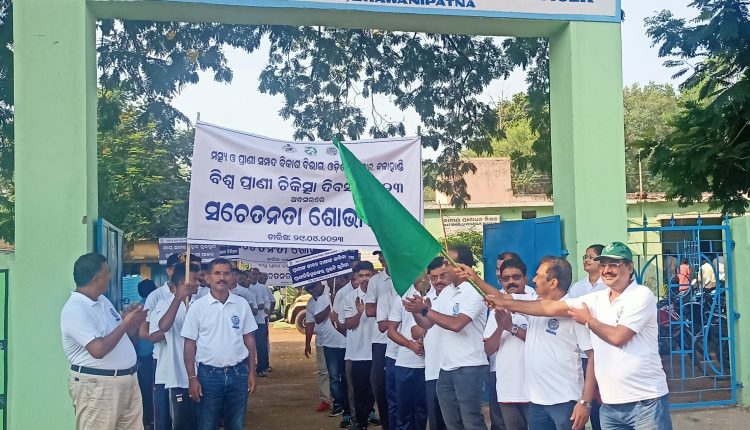 ଭବାନୀପାଟଣା : ପ୍ରତିବର୍ଷ ଏପ୍ରିଲ ମାସ ଶେଷ ସପ୍ତାହ ଶନିବାର ଦିନଟିକୂ “ବିଶ୍ୱ ପ୍ରାଣୀ ଦିବସ” ରୂପେ ପାଳନ କରାଯାଉଥିବା ଦୃଷ୍ଟିରୁ ଏ ବର୍ଷ ମଧ୍ୟ ଭବାନୀପାଟଣା ସ୍ଥିତ କଳାହାଣ୍ଡି ଜିଲ୍ଲା ମୁଖ୍ୟ ପ୍ରାଣୀ ଚିକିତ୍ସାଳୟ ତରଫରୁ “ବିଶ୍ୱ ପ୍ରାଣୀ ଦିବସ- ୨୦୨୩” ମହାସମାରୋହରେ ପାଳିତ ହୋଇ ଯାଇଅଛି। ଏହି ଉପଲକ୍ଷେ ସକାଳ ୮ଘଣ୍ଟା ସମୟରେ ପ୍ରାଣୀସମ୍ପଦ ସୁରକ୍ଷା ଲକ୍ଷ୍ୟ ନେଇ ଏକ ସଚେତନତା ଶୋଭାଯାତ୍ରାର ଆୟୋଜନ କରାଯାଇଥିଲା। ଜିଲ୍ଲା ମୁଖ୍ୟ ପ୍ରାଣୀ ଚିକିତ୍ସା ଅଧିକାରୀ ଡ. ହେମନ୍ତ କୁମାର ପ୍ରଧାନଙ୍କ ନେତୃତ୍ବରେ ଏହି ଶୋଭାଯାତ୍ରାରେ ବହୁ ଛାତ୍ରଛାତ୍ରୀ, କୃଷକ ତଥା ପ୍ରାଣୀ ବିଭାଗର ସମସ୍ତ ଅଧିକାରୀ ଓ କର୍ମଚାରୀ ଅଂଶ ଗ୍ରହଣ କରିଥିବାର ଦେଖାଯାଇଥିଲା। ସ୍ଥାନୀୟ ସଡିଭିଓଙ୍କ କାର୍ଯାଳୟ ଠାରୁ ବାହାରି ଏ ଶୋଭାଯାତ୍ରା ସହର ପରିକ୍ରମା କରି ଫେରିଆସିଥିଲ । ପରେ ପରେ ଭବାନୀପାଟଣା ସହର ସନ୍ନିକଟ