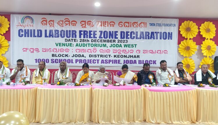 ଯୋଡା : କେନ୍ଦୁଝର ଜିଲ୍ଲା ପଶ୍ଚିମ ଯୋଡା ଅଡିଟୋରିୟମ ଠାରେ ପଞ୍ଚାୟତିରାଜ ଅନୁଷ୍ଠାନ ଓ ଆସ୍ପାୟାରର ମିଳିତ ଆନୁକୂଲ୍ୟରେ ବ୍ଲକସ୍ତରୀୟ ଶିଶୁ ଶ୍ରମିକ ମୁକ୍ତ ଅଞ୍ଚଳ ଘୋଷଣା କାର୍ଯ୍ୟକ୍ରମ ଅନୁଷ୍ଠିତ ହୋଇଯାଇଛି । ଖଣିଖାଦାନ ଭରା ଉପାନ୍ତ ଆଦିବାସୀ ଅଧ୍ୟୁଷିତ ଅଞ୍ଚଳ ଯୋଡା ବ୍ଲକରେ ଆବାସିକ ଶିକ୍ଷା ବ୍ୟବସ୍ଥା ସହ ଶିକ୍ଷାର ମୁଖ୍ୟସ୍ରୋତରେ ଯୋଡିବା ପାଇଁ ୨୦୧୫ ମସିହାରେ ବେସରକାରୀ ସଂସ୍ଥା ଟାଟାଷ୍ଟିଲ ଫାଉଣ୍ଡେସନ ସହାୟତାରେ ଆସ୍ପାୟାର କାର୍ଯ୍ୟ କରି ଆସୁଛି । ଶିଶୁ ସୁରକ୍ଷା ଅଧିକାର ସହ ଶିକ୍ଷାର ବିଭିନ୍ନ କ୍ଷେତ୍ରରେ କାର୍ଯ୍ୟ କରି ସଫଳ ହୋଇଛି । ଏହି ପରିପ୍ରେକ୍ଷୀରେ ଆଜିର ଏହି କାର୍ଯ୍ୟକ୍ରମରେ ମୁଖ୍ୟଅତିଥି ଭାବେ ପଦ୍ମଶ୍ରୀ ତୁଳସୀ ମୁଣ୍ଡା,ସମାଜସେବୀ ଦମୟନ୍ତୀ ସାମଲ,ବିଧାୟିକା ପ୍ରତିନିଧି ବାବୁଲାଲ ସାହୁ,ଯୋଡା ବ୍ଲକ ଅଧ୍ୟକ୍ଷ କବୀନ୍ଦ୍ର ନାଏକ,ଯୋଡା ମହିଳା ମହାବିଦ୍ୟାଳୟ ଅଧ୍ୟକ୍ଷା ମୃଦୁଳା ମହାନ୍ତି,ଯୋଡା ବ୍ଲକ ବିଇଓ କ୍ଷେତ୍ରମୋହନ ହାସଦା,ମଙ୍ଗଳ ସମ୍ପ୍ରସାରଣ ଅଧିକାରୀ ସ୍ୱରୂପ ରାଜ ବିଷୋୟୀ,ନିରଞ୍ଜନ ବହିଦାର,ଜିଲ୍ଲାପରିଷଦ ଶଶୀକାନ୍ତ ଖିଲାର,ସୁକୁମାରୀ ଦେହୁରୀ,ଡମ୍ବରୁଧର କୁଦାଦାଃ,ପଞ୍ଚାୟତ ସମ୍ପ୍ରସାରଣ ଅଧିକାରୀ କାହ୍ନୁ ମାଝୀ,ସିଡିପିଓ ମାନସୀ ବେହେରା,ସୁକାନ୍ତୀ ପାତ୍ର,ଟେନସା ସିଆରସିସି ପ୍ରଶାନ୍ତ ବେହେରା,ଆସ୍ପାୟାର ଷ୍ଟେଟ କୋର୍ଡିନେଟର ରବି କୁମାର,ଆସ୍ପାୟାର ଯୋଡା ବ୍ଲକ କୋର୍ଡିନେଟର ରମେଶ ଗୁଗୁ,କୋଇଡା ବ୍ଲକ କୋର୍ଡିନେଟର ବାପିଲି ଗୋସ୍ୱାମୀଙ୍କ ସମେତ ଅନ୍ୟ ଅଧିକାରୀ ମାନେ ଯୋଗଦେଇ କାର୍ଯ୍ୟକ୍ରମ ସମ୍ବନ୍ଧୀୟ ବାର୍ତ୍ତା ପ୍ରେରଣ କରିବା ସହ ଆସ୍ପାୟାର କରୁଥିବା ସମସ୍ତ କାର୍ଯ୍ୟକୁ ପ୍ରଶଂସା କରିଥିଲେ । ଏହି ଶିଶୁ ଶ୍ରମିକ ମୁକ୍ତ ଅଞ୍ଚଳର ମୁଖ୍ୟ ଉଦେଶ୍ୟ ସମସ୍ତ ଶିଶୁମାନେ ଶିକ୍ଷାର ମୁଖ୍ୟସ୍ରୋତ ସହିତ ଜଡିତ ହେବା ସହିତ ଭବିଷ୍ୟତରେ ଯେମିତି କୌଣସି ଶିଶୁ ଶିକ୍ଷା ଠାରୁ ଦୂରେଇ ନ ଯାଇ ଶିକ୍ଷାର ମୌଳିକ ଅଧିକାର ପାଇବେ ସେ ବିଷୟରେ ଆଲୋଚନା କରାଯାଇଥିଲା । ସମୁଦାୟ ୩୫୧୨ ଶିଶୁ ଶ୍ରମିକଙ୍କୁ ଶିକ୍ଷା ସହ ଜଡିତ କରି ଶିଶୁମାନଙ୍କ ଭବିଷ୍ୟତକୁ ଉଜ୍ଜ୍ୱର୍ଳ କରିବାରେ ସକ୍ଷମ ହୋଇପାରିଛି ଆସ୍ପାୟାର । ଉକ୍ତ କାର୍ଯ୍ୟକ୍ରମରେ ବିଭିନ୍ନ ପ୍ରକାରର ଶିକ୍ଷା ସମ୍ବନ୍ଧୀୟ ମେଳା ପ୍ରଦର୍ଶନୀ ଛାତ୍ରଛାତ୍ରୀଙ୍କ ଦ୍ୱାରା ପ୍ରଦର୍ଶନ କରାଯାଇଥିଲା ।  ଯୋଡା ବ୍ଲକର ବିଭିନ୍ନ ପଞ୍ଚାୟତ ଜନପ୍ରତିନିଧି,କାଉନସିଲର,ବିଦ୍ୟାଳୟ ପରିଚାଳନା କମିଟି,ଯୋଡା ଶିଶୁ ସୁରକ୍ଷା ମଞ୍ଚର କର୍ମକର୍ତ୍ତା,ଶିକ୍ଷକ ସମେତ ଅନ୍ୟମାନେ ଯୋଗ ଦେଇଥିଲେ । ଯୋଡା ସହରାଞ୍ଚଳ କୋର୍ଡିନେଟର ରଶ୍ମୀରେଖା ବେହେରା ମଞ୍ଚ ପରିଚାଳନା କରିଥିବା ବେଳେ ଆସ୍ପାୟାର ସହ ସଂଯୋଗ ରମେଶ,ଉତ୍ତମ ନାଏକ,ବିଜୟ ନାଏକ,ତାପସ ବାରିକଙ୍କ ସହ ଅନ୍ୟମାନେ ଏହି କାର୍ଯ୍ୟକ୍ରମକୁ ପରିଚାଳନା କରିଥିଲେ ।