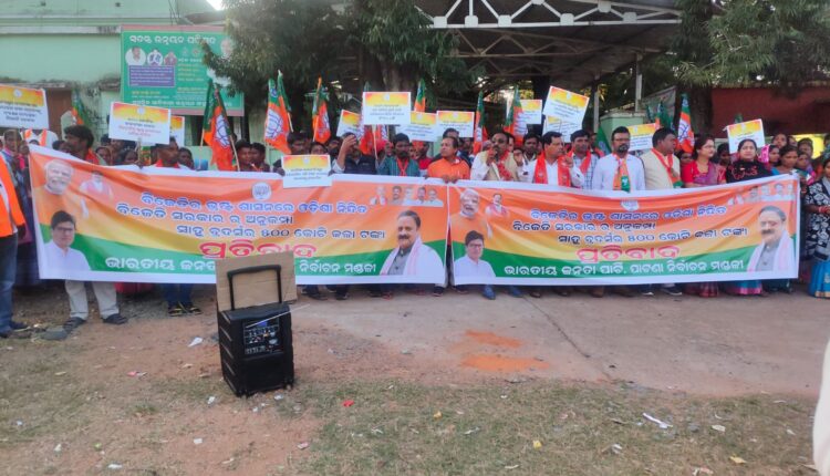 ମଦ ଦୁର୍ନୀତି ଓ କଳାଟଙ୍କା ଜବତ ଘଟଣାରେ ବିଜେଡ଼ିର ସଂପୃକ୍ତି,ପ୍ରତିବାଦରେ ଉପଜିଲ୍ଲାପାଳ କାର୍ଯ୍ୟାଳୟର ଆଗରେ ବିଜେପିର ଆନ୍ଦୋଳନ