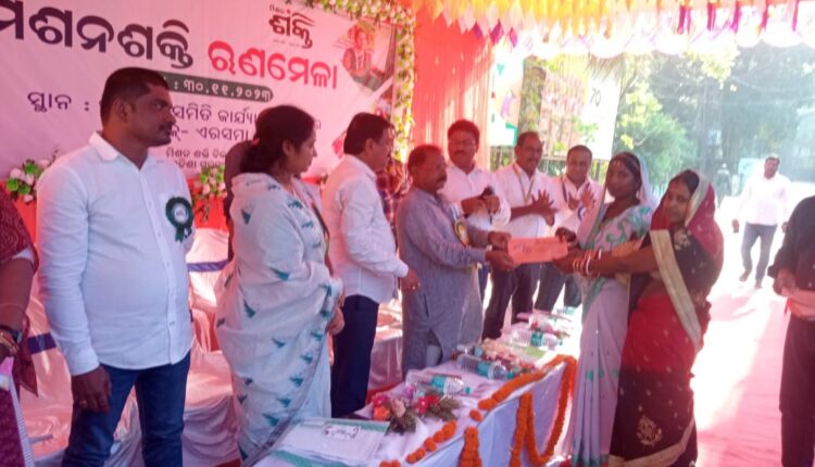 ଏରସମା : ଏରସମା ବ୍ଲକ ମିଶନ ଶକ୍ତି ପକ୍ଷରୁ ଗୁରୁବାର ଏକ ଋଣମେଳା ଅନୁଷ୍ଠିତ ହୋଇଛି। ବ୍ଲକ୍ କାର୍ଯ୍ୟାଳୟ ପରିସରରେ ଆୟୋଜିତ କାର୍ଯ୍ୟକ୍ରମରେ ବାଲିକୁଦା ଏରସମା ବିଧାୟକ ରଘୁନନ୍ଦନ ଦାସ ମୂଖ୍ୟ ଅତିଥି ଭାବେ ଯୋଗଦେଇ ବ୍ଲକ୍ ଅଞ୍ଚଳର ୪୧୫ ଟି ସ୍ଵୟଂ ସହାୟକ ଗୋଷ୍ଠୀକୁ ୧୬ କୋଟି ୩ ଲକ୍ଷ ୨୦ ହଜାର ଟଙ୍କାର ୠଣ ଚେକ୍ ପ୍ରଦାନ କରିଛନ୍ତି। ଏଥିସହିତ ମିଶନ ଶକ୍ତିର ସଦସ୍ୟାମାନେ ନେଉଥିବା ଋଣର ସଠିକ ଉପଯୋଗ ସହିତ ସଠିକ୍ ସମୟରେ ଋଣ ପରିଶୋଧ କରିବାକୁ ଉପସ୍ଥିତ ସ୍ଵୟଂ ସହାୟକ ଗୋଷ୍ଠୀର ସଦସ୍ୟା,ଏମ ବି କେ,ସି ଆର ପି ଓ ବ୍ୟାଙ୍କମିତ୍ର ମାନଙ୍କୁ ପରାମର୍ଶ ଦେଇଥିଲେ। ଏରସମା ମଣ୍ଡଳ ଉନ୍ନୟନ ଅଧିକାରୀ ଲମ୍ବୋଦର ଖୁଣ୍ଟିଆଙ୍କ ସଭାପତିତ୍ବରେ ଆୟୋଜିତ ଉତ୍ସବରେ,ପଞ୍ଚାୟତ ସମିତି ଅଧ୍ୟକ୍ଷା ଲକ୍ଷ୍ମୀ ପ୍ରିୟା ମହାପାତ୍ର, ଏରସମା ବ୍ଲକ ବିଜୁଜନତାଦଳ ଉପସଭାପତି ତଥା ତିନି ନଂ ଜୋନ୍ ଜିଲ୍ଲା ପରିଷଦ ସଭ୍ୟ ପୀତବାସ ଗଛାୟତ,ପ୍ରଣବ ସ୍ବାଇଁ,ଜିଲ୍ଲା ପରିଷଦ ସଭ୍ୟା ରାଣୀ ଟୁଡୁ,ବ୍ଲକ୍ ଉପାଧ୍ୟକ୍ଷ ବିକାଶ ପରିଡା,ଡିପିସି ମୋନାଲିସା ଭଞ୍ଜ,ନାବାର୍ଡ ଡିଡିଏମ ବିଶ୍ବଭୂଷଣ ମହାନ୍ତି,ବାଲିତୁଠ ୟୁକୋ ବ୍ୟାଙ୍କ ଶାଖା ପରିଚାଳକ ଶୁଭକାନ୍ତ ସ୍ଵାଇଁ ପ୍ରମୁଖ ଯୋଗଦେଇ ଋଣମେଳାର ଆଭିମୁଖ୍ୟ ସମ୍ପର୍କରେ କହିଥିଲେ। ଓଡିଶା ଜୀବିକା ମିଶନ ବିପିସି କାର୍ତ୍ତିକ ସ୍ଵାଇଁ ଧନ୍ୟବାଦ ଦେଇଥିଲେ। ମିଶନ ଶକ୍ତି କର୍ମଚାରୀ ଜ୍ଞାନ ରଞ୍ଜନ ବାରିକ କାର୍ଯ୍ୟକ୍ରମକୁ ପରିଚାଳନା କରିଥିଲେ।