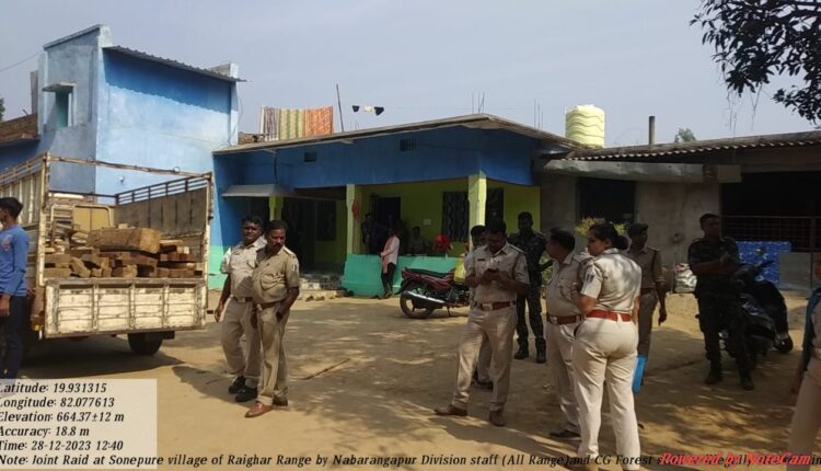 ରାଇଘର : ନବରଙ୍ଗପୁର ଜିଲ୍ଲା ରାଇଘର ବ୍ଲକ ଅନ୍ତର୍ଗତ ସୋନପୁର (ଡିଏନକେ) ଗ୍ରାମରେ ବାରମ୍ବାର ବେଆଇନ କାଠ କାମ ଚାଲିଥିବା ଅଭିଯୋଗ ହେବା ଫଳରେ ଆଜି ଓଡିଶା ଓ ଛତିଶଗଡ ବନ ବିଭାଗର ମିଳିତ ଚଢାଉ ହୋଇଥିଲା | ଏହି ଚଢାଉରେ ଉକ୍ତ ଗ୍ରାମର ୧୩ ଗୋଟି ଘରରୁ ପ୍ରାୟ ୪ ପିକପ ଶାଗୁଆନ କାଠର ଅର୍ଦ୍ଧ ନିର୍ମିତ ଆସବାବ ଜିନିଷ ସହିତ କାଠ ଗଣ୍ଡି ଓ ପଟ୍ଟା ଜବତ ହୋଇଥିଲା | ତେବେ ଏହିି ଚଢାଉରେ କାହାରିକୁ ଗିରଫ କରାଯାଇ ନଥିବା ବନ ବିଭାଗ ପ୍ରକାଶ କରିଛି l ସୂଚନା ଅନୁଯାଇ ସୋନପୁର ଡିଏନକେ ଗ୍ରାମରେ ଛତିଶଗଡ଼ ଅଂଚଳରୁ କାଠ ଚାଲାଣ ହେଉଥିବା ଯୋଗୁଁ ସେଠାକାର ବନ ବିଭାଗର ଆବେଦନ ପରେ ଓଡିଶା ବନ ବିଭାଗ ସକ୍ରିୟ ହୋଇପଡିଛି l ଆଜି ନବରଙ୍ଗପୁର ଡିଏଫଓ ଶୁଭେନ୍ଦୁ ପ୍ରସାଦ ବେହେରା ଙ୍କ ନିର୍ଦ୍ଦେଶ କ୍ରମେ ତଥା ଜିଲ୍ଲା ଏସିଏଫଓ ମନସୁନ୍ ଖେମୁଣ୍ଡୁଙ୍କ ନେତୃତ୍ୱରେ ରାଇଘର , ଝରିଗାଁ ,ଡାବୁଗାଁ ଓ ନବରଙ୍ଗପୁର ବନ ବିଭାଗର କର୍ମଚାରୀଙ୍କୁ ନେଇ ଏକ ଟିମ୍ ଗଠନ କରାଯଇଥିଲା | ସେହିଭଳି ଛତିଶଗଡର ଗାରିଆବନ୍ଦ ଏସିଏଫଓଙ୍କ ନେତୃତ୍ୱରେ ଇନ୍ଦାଗାଓଁ , ତୋରେଙ୍ଗା ଆଦି ରେଂଯର କର୍ମଚାରୀଙ୍କୁ ନେଇ ଆଉ ଏକ ଟିମ୍ ଗଠନ କରାଯଇଥିଲା | ଓଡିଶାର ୬୦ ଜଣ ଓ ଛତିଶଗଡର ୪୦ ଜଣ ବନ କର୍ମଚାରୀ ଏହି ଚଢାଉରେ ସାମିଲ ହୋଇଥିଲେ | ଆଜି ଦିନ ପ୍ରାୟ ୧୨ଟା ସମୟରେ ଉଭୟ ରାଜ୍ୟର ବନ କର୍ମଚାରୀମାନଙ୍କୁ ନେଇ ସୋନପୁର ଡିଏନକେ ଗ୍ରାମରେ ଚଢାଉ ଆରମ୍ଭ ହୋଇଥିଲା | ଉକ୍ତ ଗ୍ରାମର ପ୍ରାୟ ୧୩ ଜଣଙ୍କ ଘର ମଧ୍ୟରୁ ଶାଗୁଆନ କାଠ ଗଣ୍ଡି , ପଟ୍ଟା , ଖଟ ଖୁରା, ଚୌକାଠ ଓ ଅର୍ଦ୍ଧ ନିର୍ମିତ ଫର୍ନିଚର୍ ଗୁଡ଼ିକକୁ ନେଇ ପ୍ରାୟ ୪ ପିକପ ବୋଝେଇ କରି ସ୍ଥାନୀୟ ରେଞ୍ଜ କାର୍ଯ୍ୟାଳୟକୁ ଅଣା ଯାଇଛି l ବର୍ତ୍ତମାନ ସୁଦ୍ଧା ଏହାର ସଠିକ୍ ଆକଳନ କରାଯାଇ ନଥିବା ବନ ବିଭାଗ ପକ୍ଷରୁ ସୂଚନା ମିଳିଛି l ତେବେ ଏହିି ୧୦୦ ଜଣ କର୍ମଚାରୀଙ୍କ ଏହି ଟିମ୍ ଚଢାଉ କରିଥିବା ବେଳେ କାହାରିକୁ ଗିରଫ କରାଯାଇ ନଥିବା ଆଶ୍ଚର୍ଯ୍ୟ ସୃଷ୍ଟି କରିଛି l ଆସନ୍ତା କାଲି ଜବତ ହୋଇଥିବା କାଠ ସାମଗ୍ରୀର ପ୍ରକୃତ ତଥ୍ୟ ପ୍ରକାଶ ପାଇବା ବୋଲି ବନ ବିଭାଗ ସୂଚନା ଦେଇଛି l