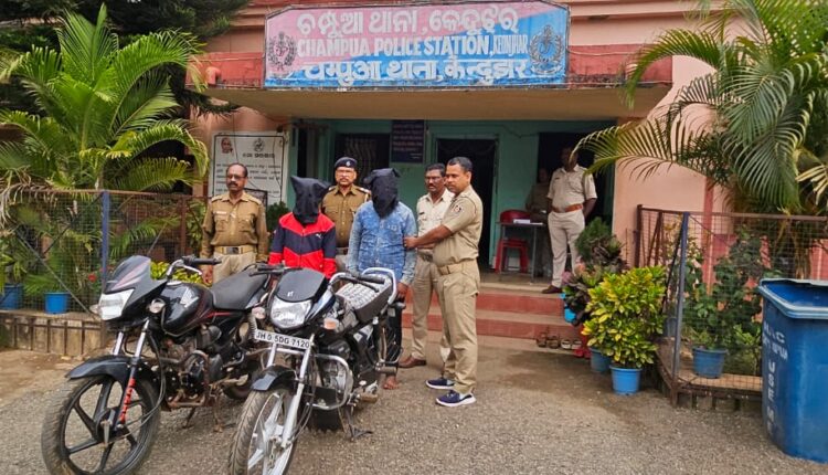 ଚମ୍ପୁଆ : ଚମ୍ପୁଆ ଥାନା ଅଞ୍ଚଳରେ ବାରମ୍ବାର ବାଇକ ଚୋରୀ ପୋଲିସ ପାଇଁ ଏକ ଚ୍ୟାଲେଞ୍ଜ ସୃଷ୍ଟି କରିଥିଲା । ଏହି କିଛି ଦିନ ଭିତରେ ସହରାଞ୍ଚଳରୁ ୪ଟି ବାଇକ ଚୋରି ହୋଇଥିବା ନେଇ ଥାନାରେ ଅଭିଯୋଗ ହୋଇଥିଲା । ଏହାକୁ ଗୁରୁତର ସହ ନେଇ ଚମ୍ପୁଆ ଥାନାର ନୂତନ ଅଧିକାରିଣୀ ଦେବକୀ ନାଏକ ୪ଟି ଯାକ ବାଇକ୍ ଉଦ୍ଧାର କରିବାରେ ସଫଳ ହୋଇଛନ୍ତି । ସେ ବାଇକ ଗୁଡିକର ନମ୍ବର ହେଲା OD-09-V 2973,JH-22A-6149 ଏବଂ ଅନ୍ୟ ଦୁଇଟି ବାଇକର ନମ୍ବର ପ୍ଲେଟ ବାହାର କରି ନିଆଯାଇଥିବା ଆଇଆଇସି ପ୍ରକାଶ କରିଛନ୍ତି । ଥାନା କେସ ନଂ ୭୬/୨୦୨୪ଏକ ମକଦ୍ଦମା ରୁଜୁ କରାଯାଇ ଚୋରି ଅଭିଯୋଗରେ ସମୀର ଖାନ(୨୩),ପି-ସୁଲେମାନ ଖାନ,ଇକ୍ରା ନଗର ଚମ୍ପୁଆ ମୁସଲିମ ବସ୍ତି ଏବଂ ଏସ.କେ.ଅଖତର, ପି-ଏମ.ଡି.ସଲିମ,ଝାଟିଆଳି, କରଞ୍ଜିଆ, ମୟୁରଭଞ୍ଜ, ଉଭୟଙ୍କୁ ଗିରଫ କରି କୋର୍ଟ ଚାଲାଣ କରାଯାଇଥିବା ଜଣାପଡ଼ିଛି ।