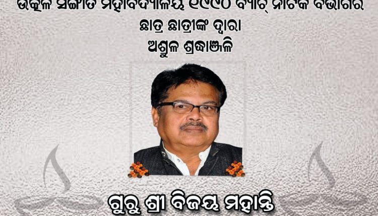 ଭୁବନେଶ୍ୱର: ଜୁଲାଇ ୨୦ ତାରିଖରେ ପରଲୋକ ଗମନ କରିଛନ୍ତି ଓଲିଉଡ୍ ଜଗତର ପ୍ରଖ୍ୟାତ ଅଭିନେତା ବିଜୟ ମହାନ୍ତି । ସେହି ମହାନ ବ୍ୟକ୍ତିଙ୍କ ଆତ୍ମାର ସଦଗତି ନିମନ୍ତେ ଉତ୍କଳ ସଙ୍ଗୀତ ମହାବିଦ୍ୟାଳୟ ୧୯୯୦ ବ୍ୟାଚ ନାଟକ ବିଭାଗର ଛାତ୍ରଛାତ୍ରମାନେ ଅଶ୍ରୁଳ ଶ୍ରଦ୍ଧାଞ୍ଜଳି ଅର୍ପଣ କରିବା ପାଇଁ ୨୯ ଜୁଲାଇ ସକାଳ ୯.୦୦ ଟାରେ ଭୁବନେଶ୍ୱର ବିନ୍ଦୁସାଗର ଠାରେ ‘ତିଳ ଦର୍ପଣ’ କାର୍ଯ୍ୟକ୍ରମର ଆୟୋଜନ କରିଛନ୍ତି । ଏହି କାର୍ଯ୍ୟକ୍ରମ ବିଜୟ ମହାନ୍ତିଙ୍କ ଦଶାହ ଦିବସ ଉପଲକ୍ଷେ ରଖାଯାଇଛି ।